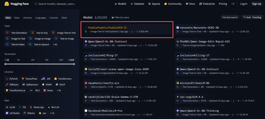 智东西10月20日消息,百度10月16日开源的多语言文档解析模型PaddleOCR-VL,连续三天霸榜Hugging Face趋势榜第一。