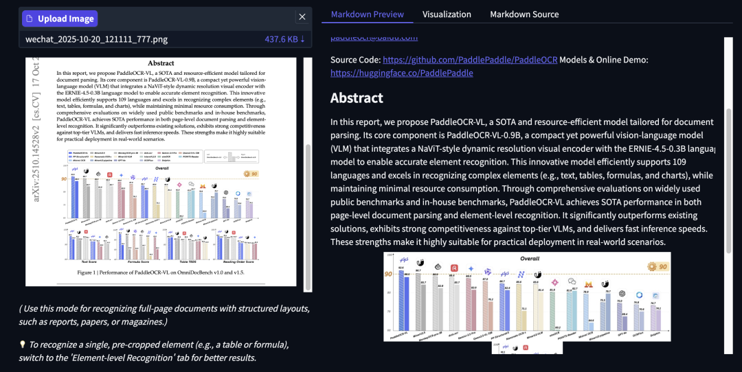 研究人员基于PaddleOCR-VL增强了模型的识别能力和解码效率,并在保证识别高精度的同时减少计算需求,使其非常适合高效实用的文档处理应用程序。