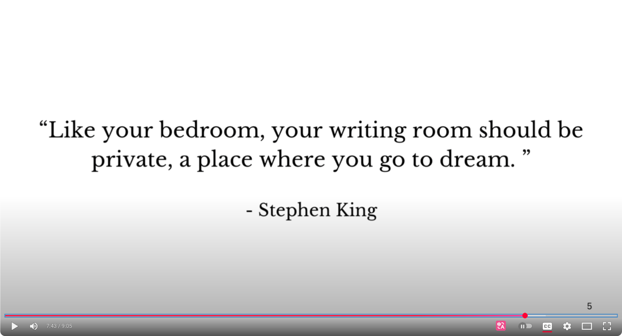 为了最高效,金为写作尽量消除摩擦。写作室不许带手机,不开电视,断网。桌上非写作相关的东西只有一杯水与一杯茶。像卧室一样,你的写作室应当私密,是一个“去做梦”的地方。还有个小诀窍:桌面上放着手稿的“最后一页”,开写前先读它,迅速把自己“带回那个世界”。